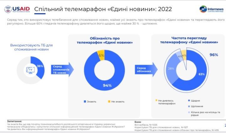 В целом опрос продемонстрировал продолжение тенденции к снижению потребления новостей через телевидение. Большинство взрослых украинцев (76%) получают новости из социальных сетей, а часть людей, пользующихся одновременно телевидением и социальными сетями для получения новостей, стремительно уменьшается – таких в 2023 году только 21%.