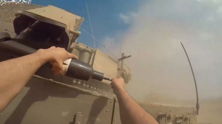 В одном из случаев участник ХАМАС подбежал к танку, положил на него гранату и подорвал ее. После чего вернулся к укрытию и сделал выстрел по танку из гранатомета.