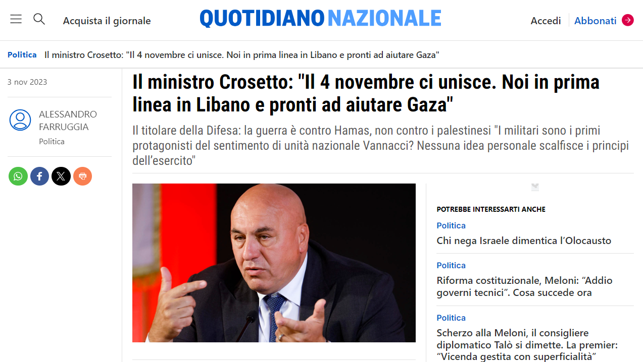 Министр обороны Италии Гвидо Крозетто. Фото: facebook