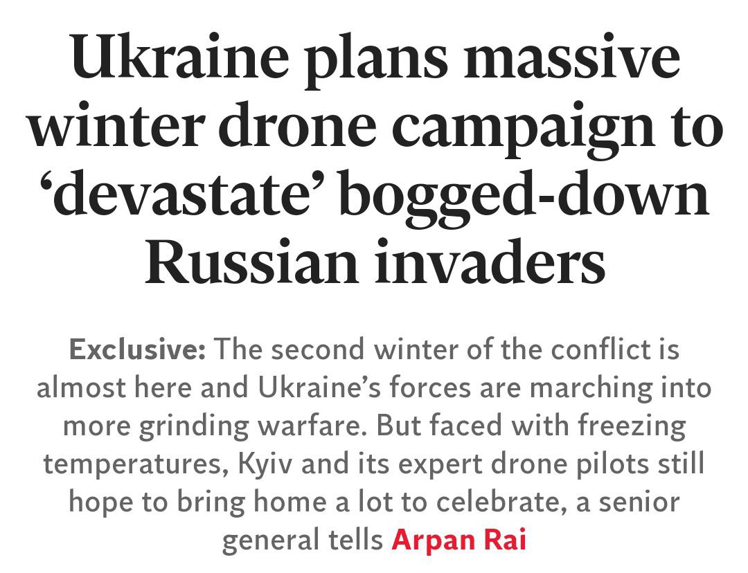 "Украина готовится начать крупное зимнее наступление беспилотников против России, поскольку суровые погодные условия препятствуют наземным атакам", - пишет газета со ссылкой на Баранова.