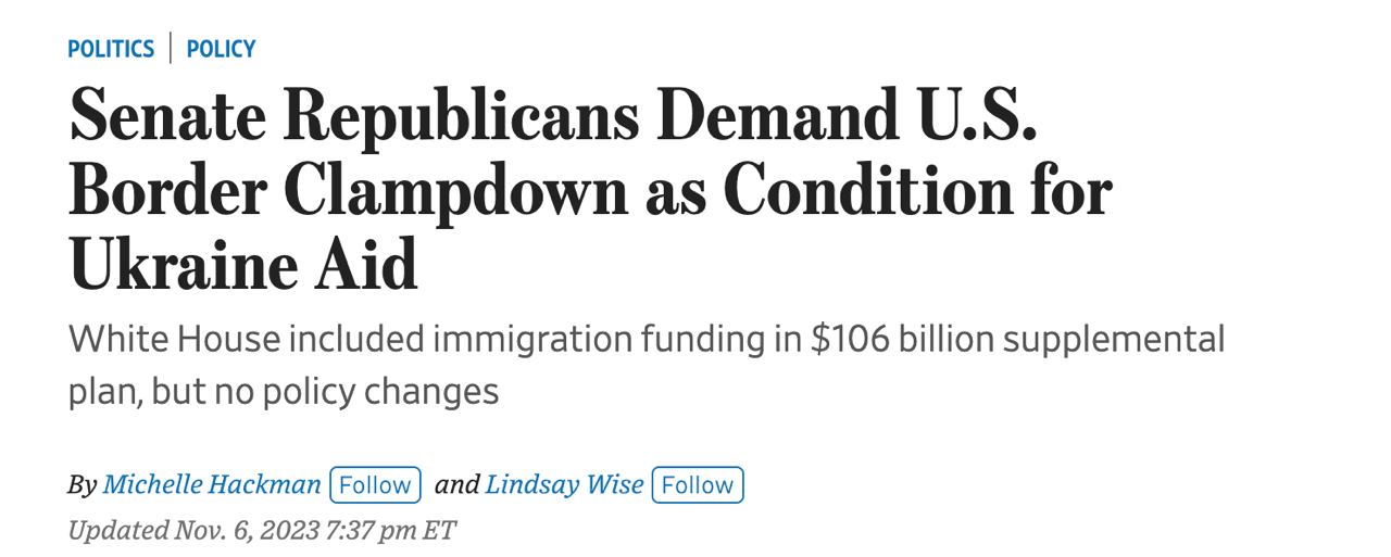Группа республиканцев в Сенате выдвинула борьбу с незаконными мигрантами в качестве условия для продолжения выделения помощи Украине.