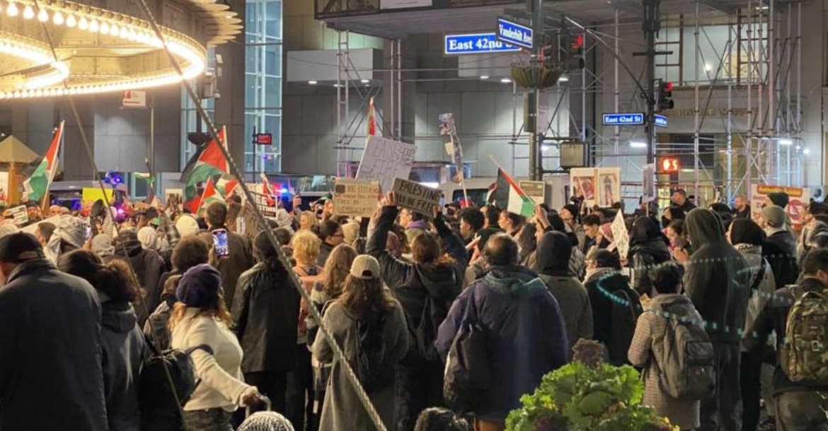 7.00 Несколько сотен человек собрались у Центрального вокзала в Нью-Йорке для участия в акции с призывом к прекращению огня в секторе Газа.