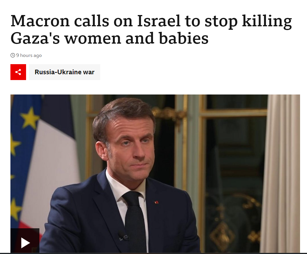 11:00 Президент Франции Эмманюэль Макрон заявил, что Израиль должен прекратить убивать младенцев и женщин в секторе Газа.