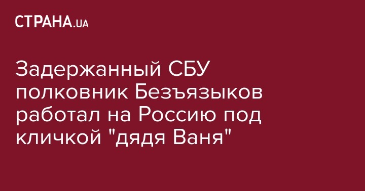 СБУ заявляет, что полковник ВСУ Иван Безъязыков, по кличке "дядя Ваня", был завербован российскими спецслужбами. Об этом во время брифинга сообщили руководитель аппарата СБУ Александр Ткачук и заместитель начальника Главного следственного управления СБУ Виталий Маяков, передает "Украинская правда".