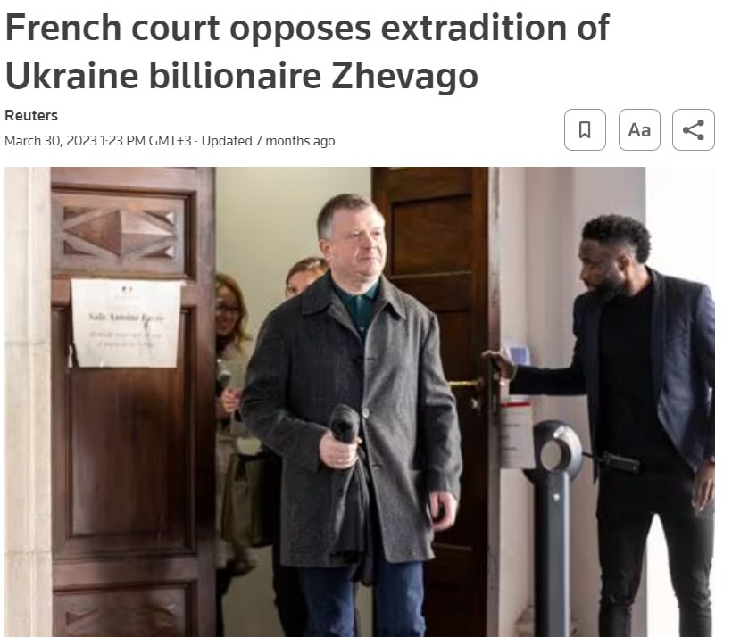 Жеваго был задержан во Франции в декабре 2022 года по запросу Украины по делу о хищении средств уже ликвидированного банка "Финансы и кредит".