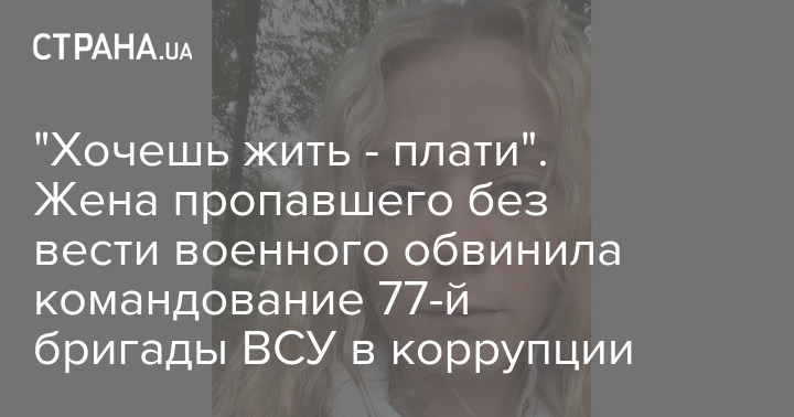 Жена пропавшего без вести украинского военного Татьяна Ивчук из Бородянки обвинила руководство 77-й отдельной аэромобильной бригады ВСУ в коррупции.