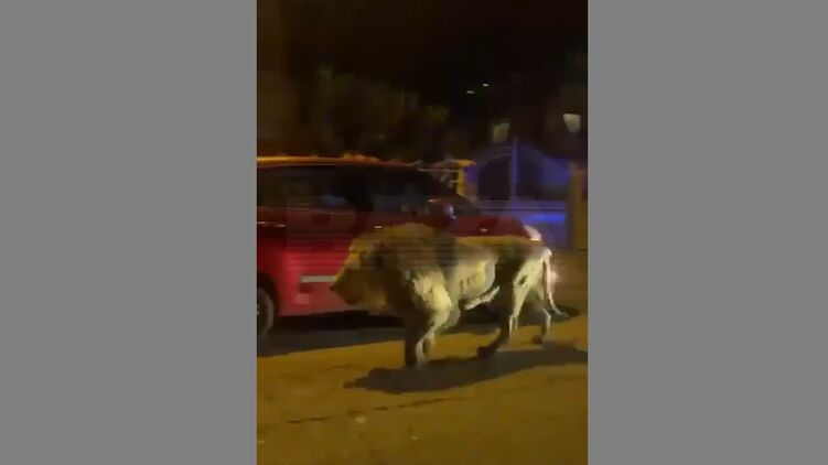 Сбежал из цирка. Появилось видео, как недалеко от Рима по городским улицам разгуливает огромный лев