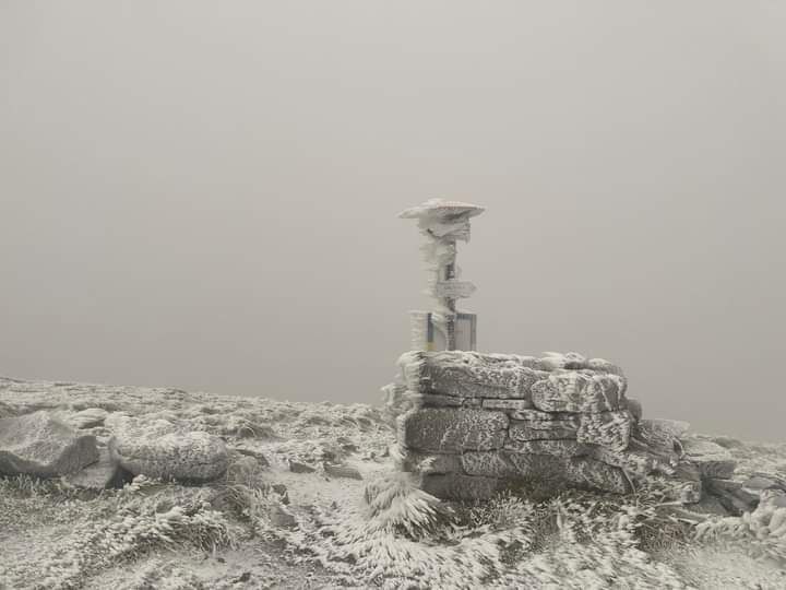 На горе Поп Иван Черногорский в Карпатах наступила настоящая зима. Спасатели предупреждают о снеге и ограниченной видимости.