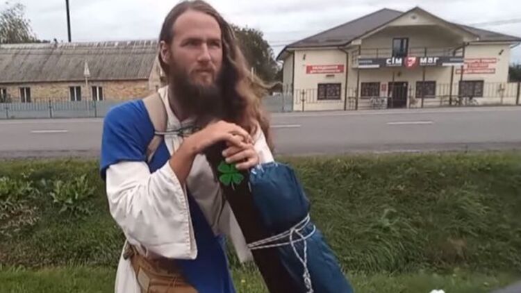 Американец в образе Христа поставил себе цель дойти до Киева. Фото: Telegram
