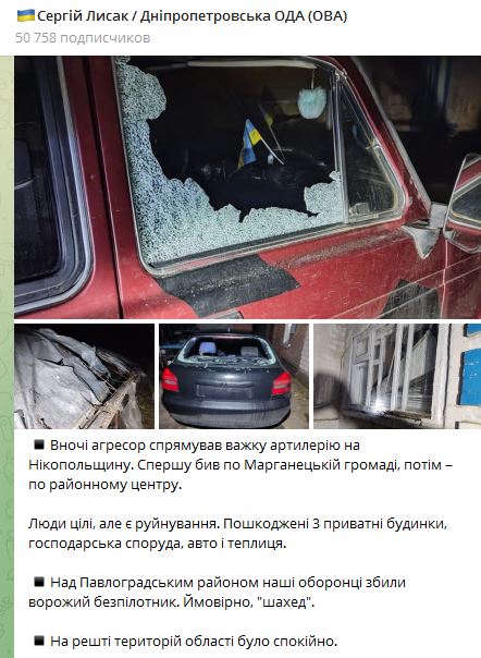 08.04 Ночью россияне ударили из тяжелой артиллерии по Никополю. Сначала биил по Марганецкой громаде, затем – по районному центру.