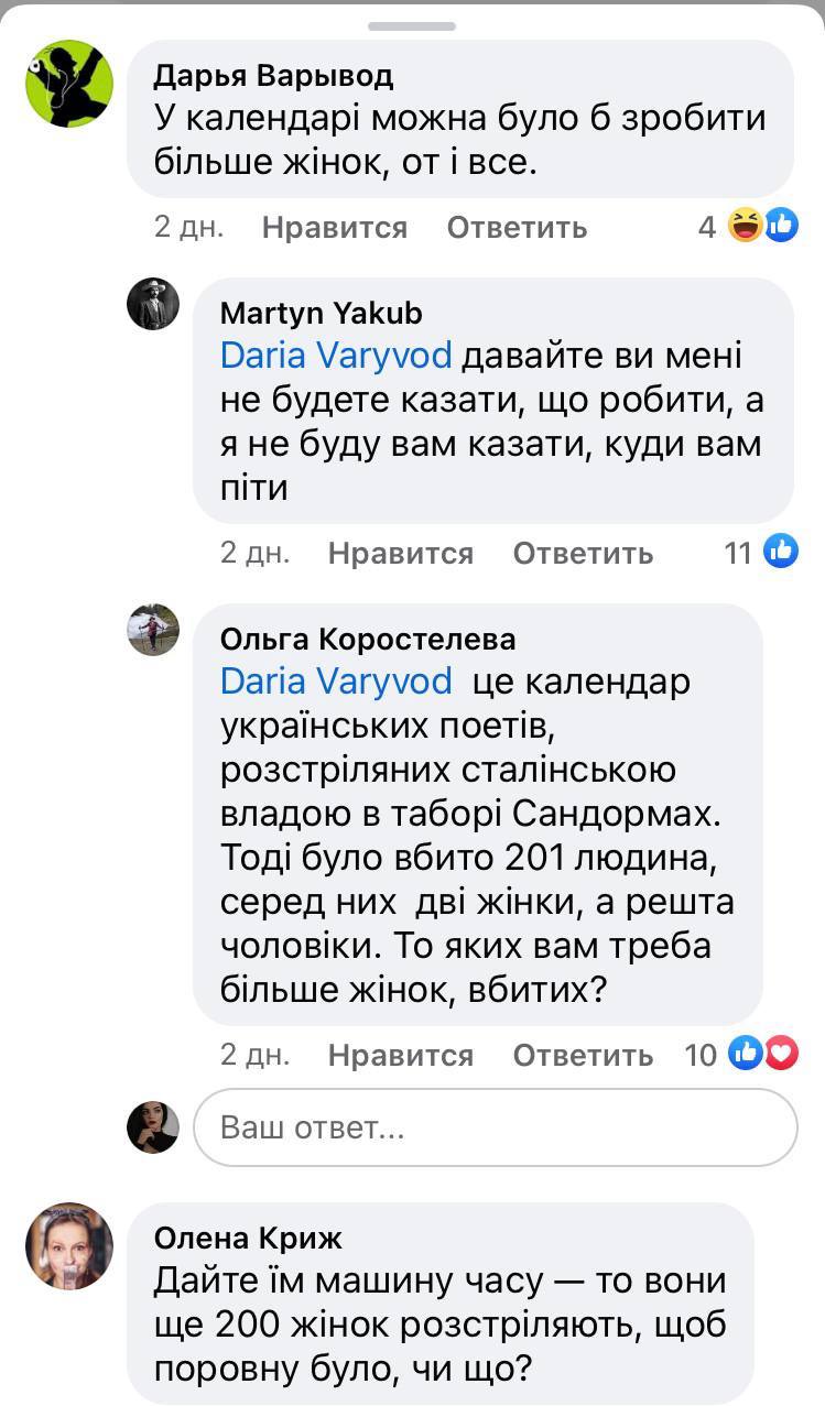 В Фейсбуке активно обсуждают феминистский скандал, связанный с календарем, посвященным украинским писателям "расстрелянного возрождения".