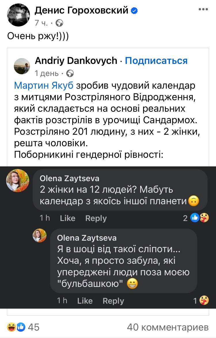 Комментарии Елены Зайцевой, намекающие на гендерную дискриминацию в календаре, активно обсуждают в украинском сегменте Фейсбука.
