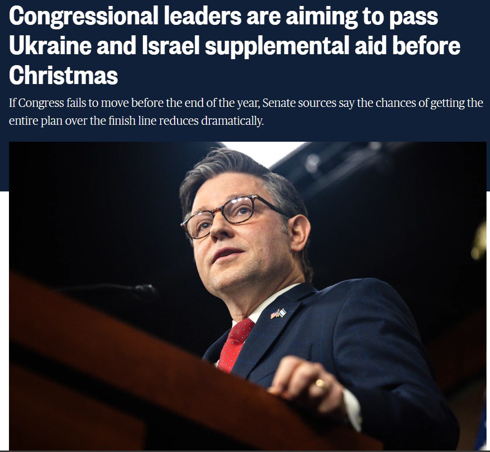 Лидеры Конгресса надеются до конца года принять пакет, cодержащий помощь Украине и Израилю. В этом же пакете может появиться финансирование охраны мексиканской границы и военные поставки странам, окружающим Китай.