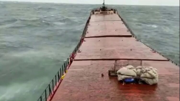 "После эвакуации судно из-за сложных погодных условий разломилось пополам", — сказано в сообщении.