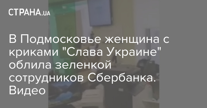 В Подмосковье женщина с криками "Слава Украине" облила зеленкой сотрудников Сбербанка. Видео