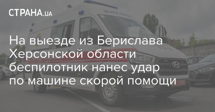 На выезде из Берислава Херсонской области беспилотник нанес удар по машине скорой помощи.