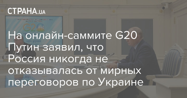 На онлайн-саммите G20 Путин заявил, что Россия никогда не отказывалась от мирных переговоров по Украине