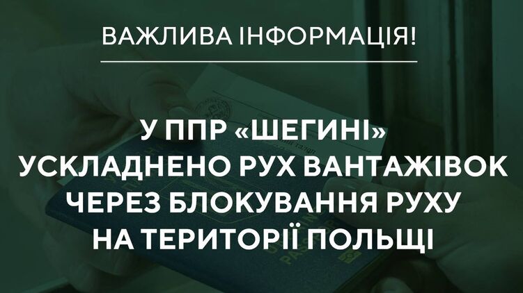 "На дороге перед пунктом пропуска "Медика" (Польша), смежном с украинским пунктом пропуска "Шегини", началось блокирование движения грузовых транспортных средств. В этой связи усложнение движения возможно как на выезд из Польши, так и на въезд.