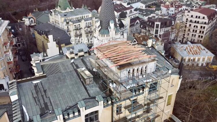 На Андреевском спуске в Киеве на здании, известном как "Замок Ричарда", сооружают незаконную надстройку.