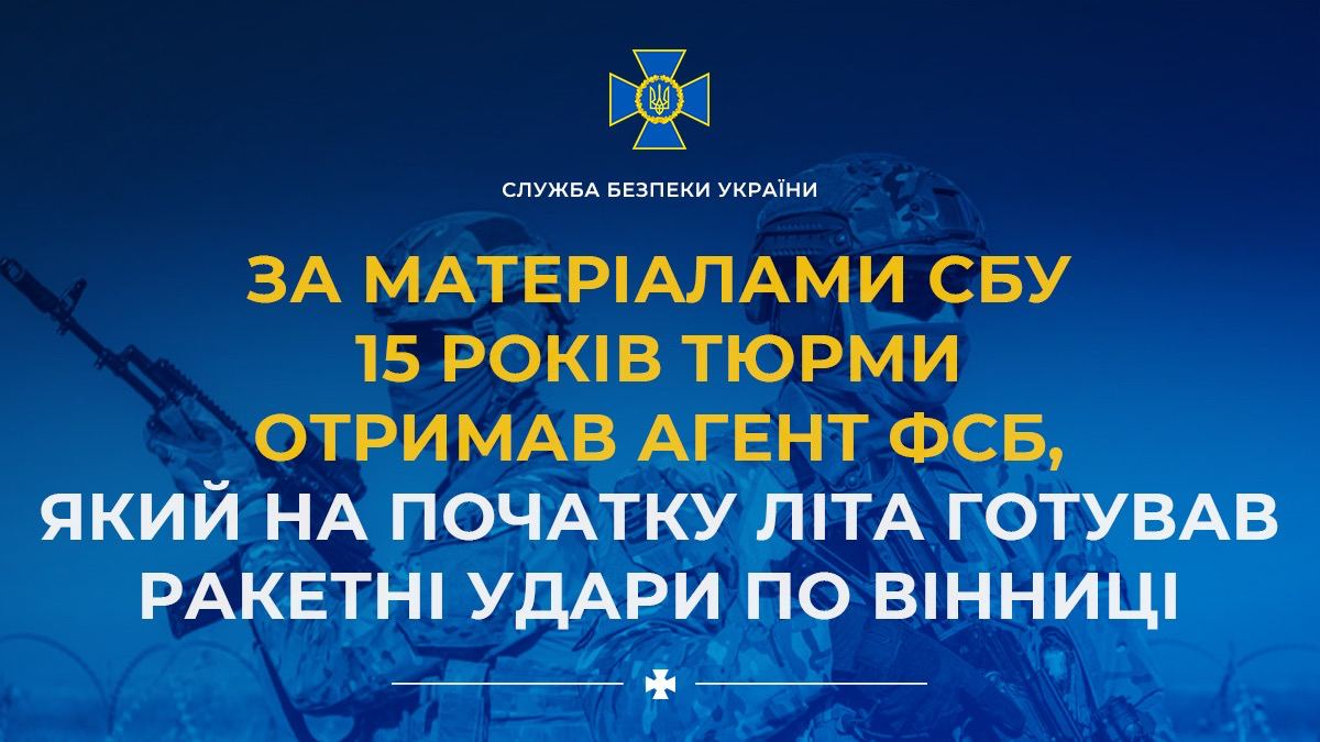 Суд приговорил российского агента ФСБ к 15 годам тюрьмы за подготовку ракетных ударов по Виннице.