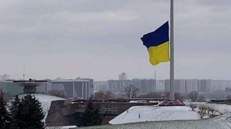 В Киеве заменили самый большой флаг Украины, который повредил сильный ветер