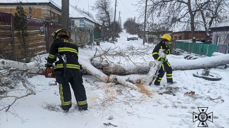 Ветер с мокрым снегом валит деревья и повреждает ЛЭП. Фото - facebook.com/MNS.GOV.UA/