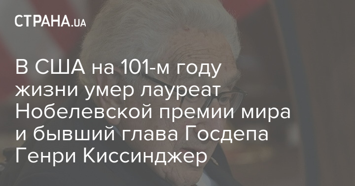В США в возрасте 100 лет скончался бывший госсекретарь и лауреат Нобелевской премии мира Генри Киссинджер. Политик умер в своем доме в Коннектикуте 29 ноября, причина смерти не называется.