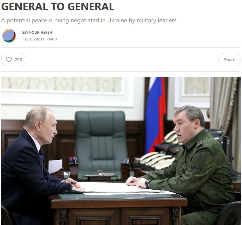 Россия и Украина ведут тайные мирные переговоры по линии Герасимов-Залужный - Сеймур Херш
