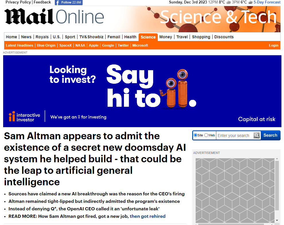 Альтман фактически подтвердил, что его уволили из OpenAI из-за секретной системы ИИ - Daily Mail