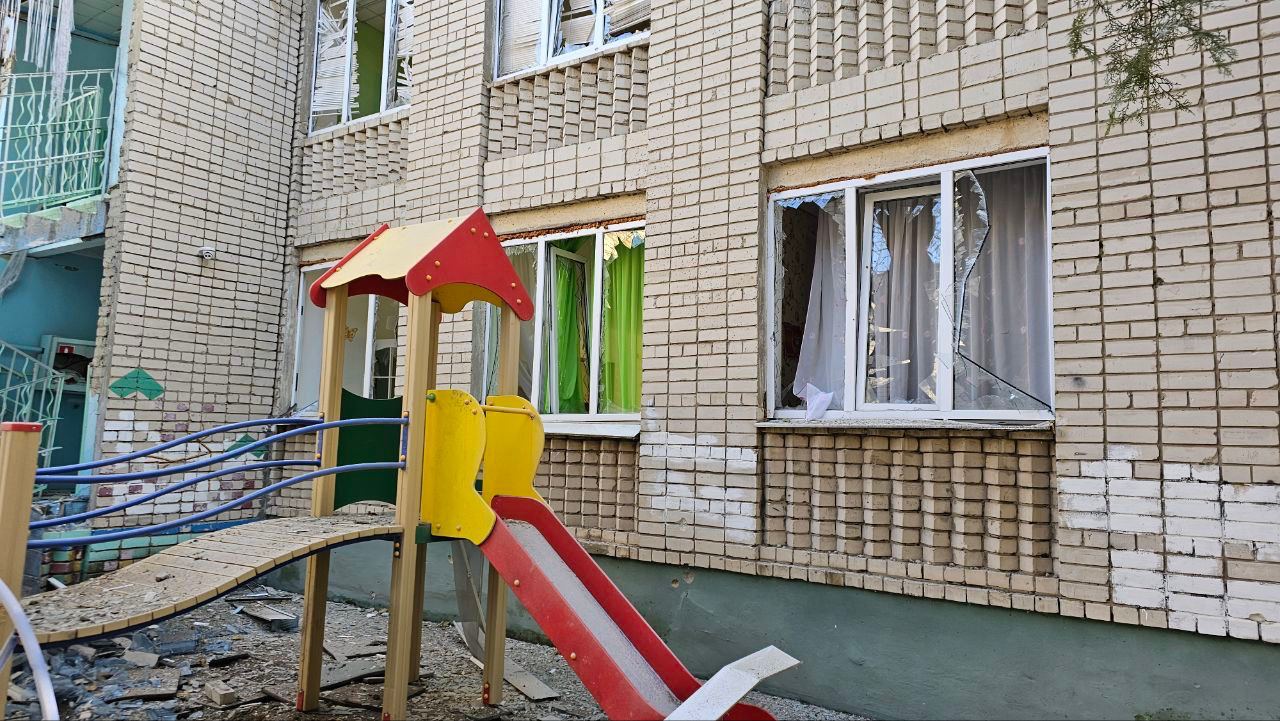 11.50 Последствия утреннего обстрела детского сада в Херсоне.