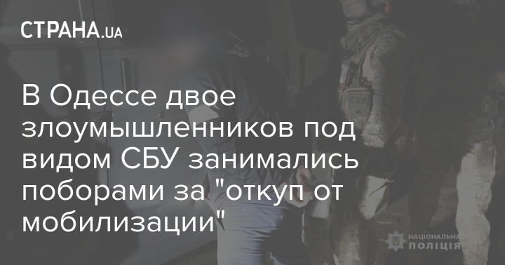 В Одессе двое злоумышленников под видом СБУ занимались поборами за "откуп от мобилизации"