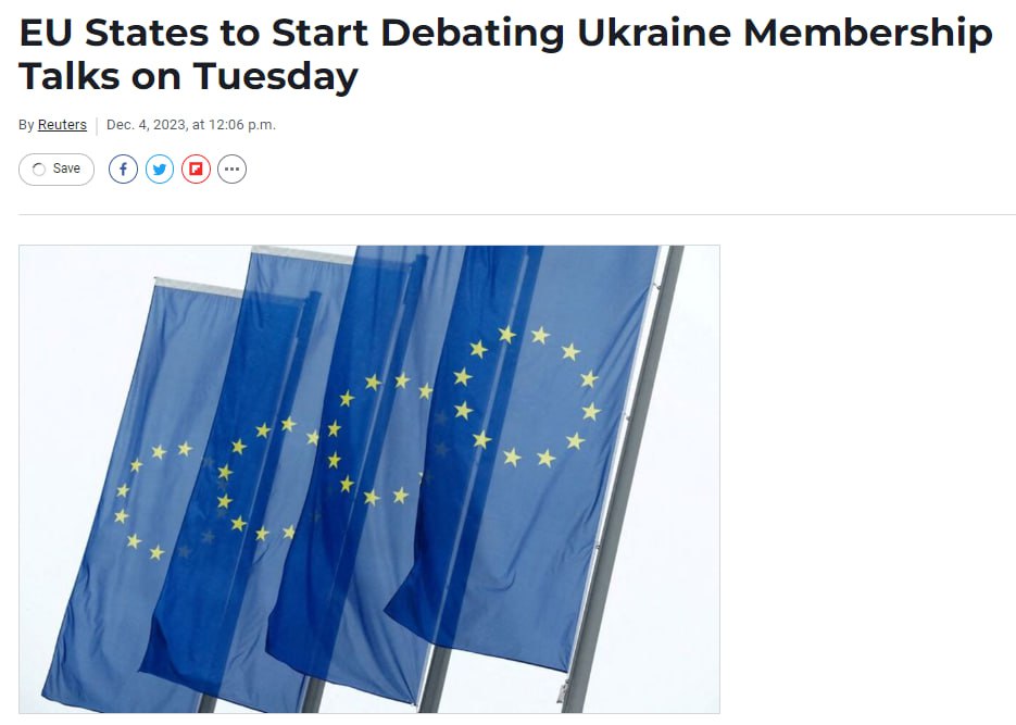 Лидеры 27 стран ЕС на саммите 14-15 декабря решат начать переговоры с Украиной и Молдовой о вступлении в состав сообщества.