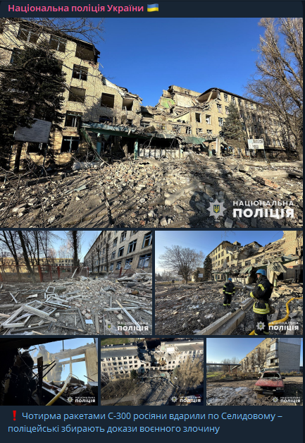 В ночь на 5 декабря, российские военные обстреляли Селидово четырьмя ракетами С-300.