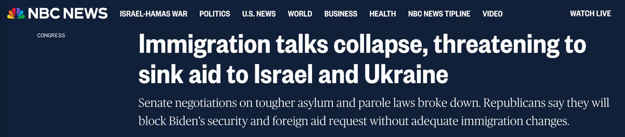 В Сенате провалились переговоры об иммиграции, что грозит прекращением помощи Украине и Израилю - NBC News