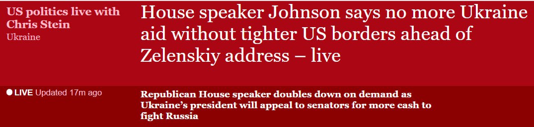 Спикер Палаты представителей Конгресса США Майк Джонсон угрожает отказаться от поддержки нового финансирования помощи Украине, если Белый дом не согласится усилить безопасность американских границ.