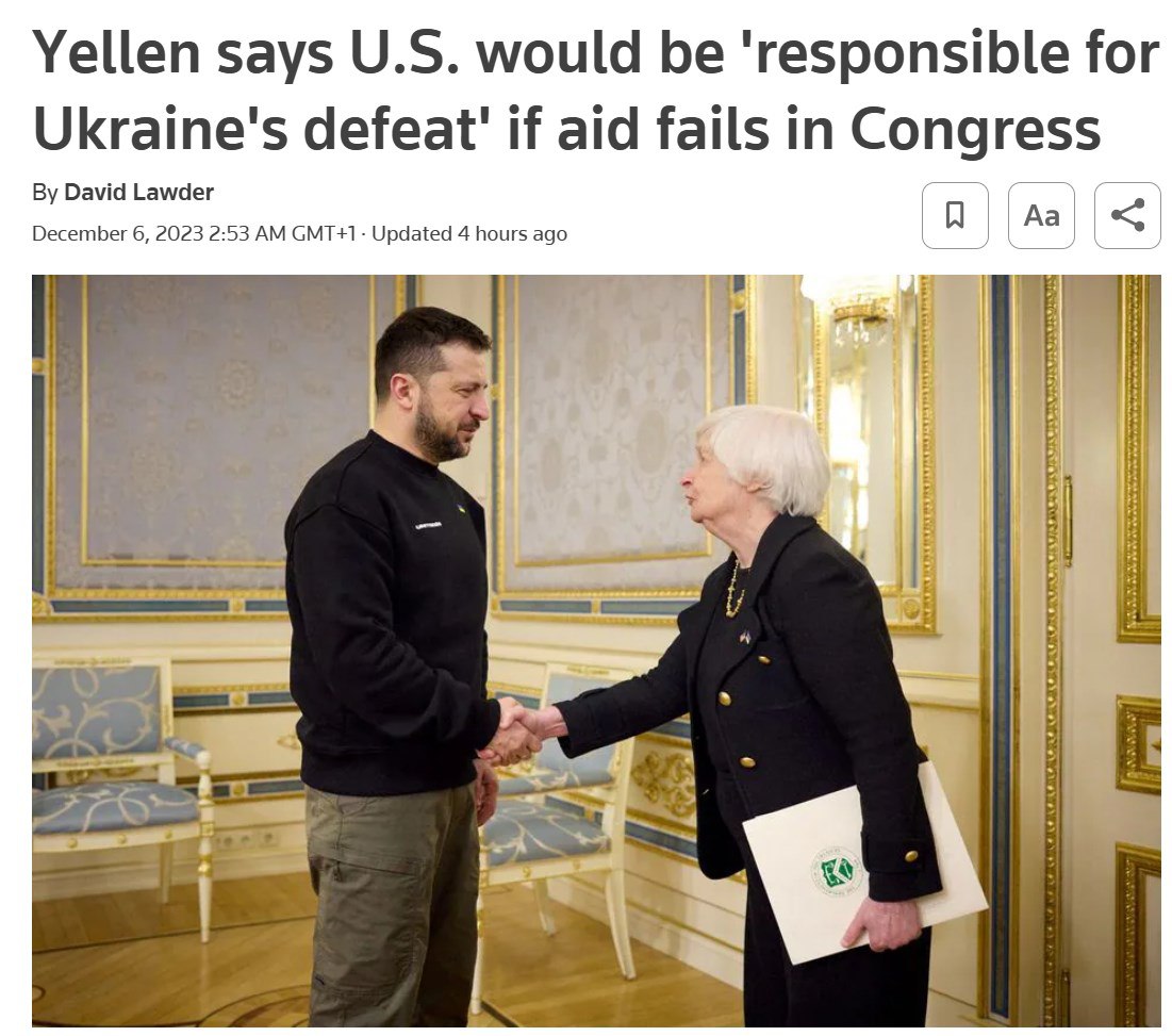 США будут нести ответственность, если Конгресс не одобрит помощь Украине - министр финансов США