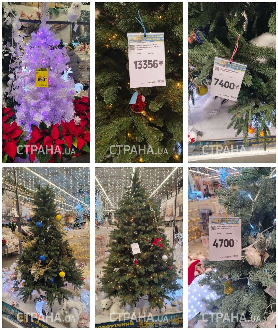 При входе в магазин располагается ряд с "живыми" деревьями. Совсем маленькие елки можно купить почти за 700 грн. А вот деревья высотой больше метра обойдутся дороже — в 1225 грн. Самый бюджетный вариант — сосна, стоимость которой немного превышает 500 грн.