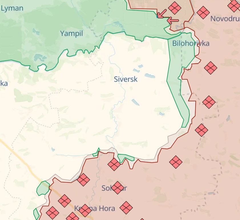 Российские паблики сегодня написали, что их войска перешли в атаку на Северском участке и продвинулись до двух километров. Никаких других подтверждений этому на данный момент нет.
