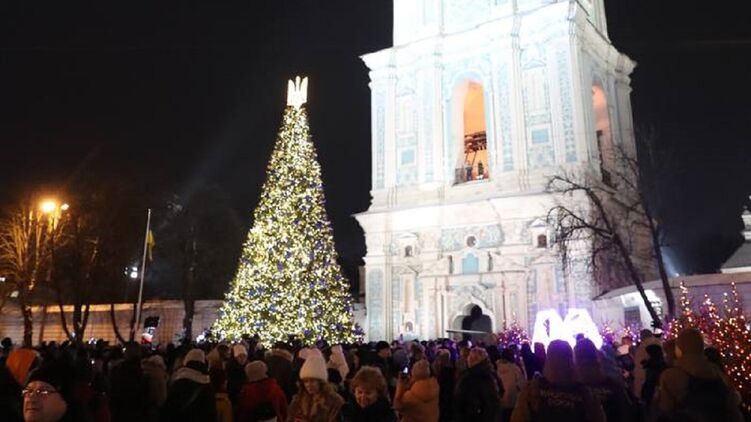 Сегодня, в день святого Николая по григорианскому календарю, на Софийской площади Киева зажгли огни на главной елке страны.