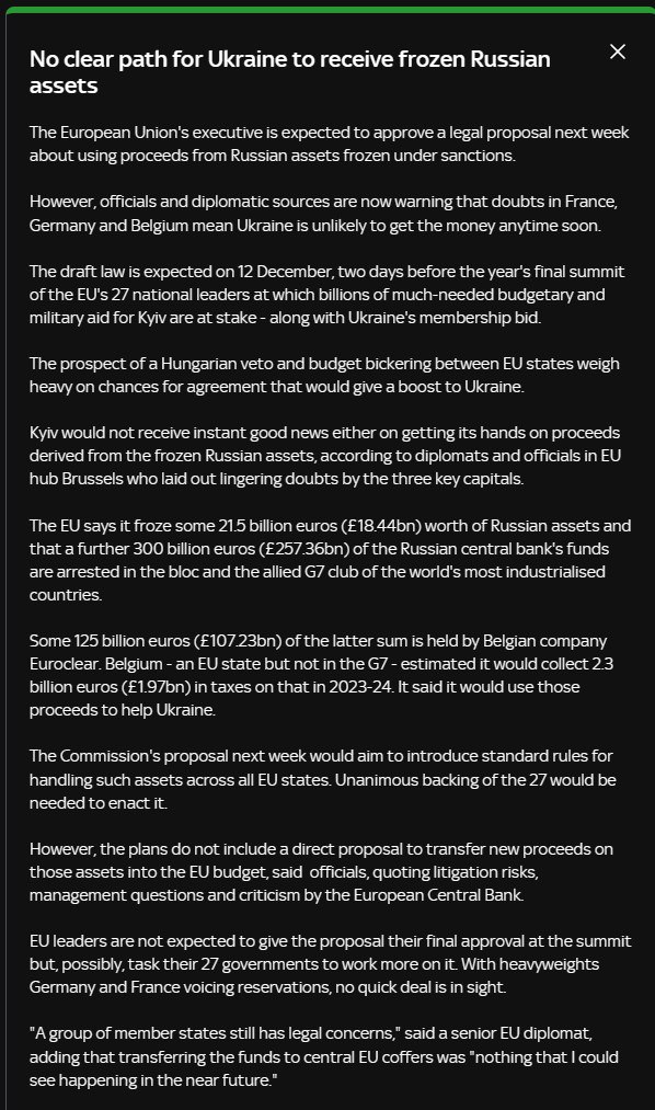 ЕС заморозил российские активы на сумму около 21,5 млрд евро и еще 300 млрд евро центрального банка арестованы всеми странами G7.