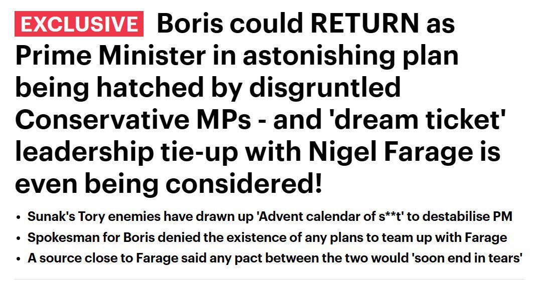 Возвращение Джонсона пытаются организовать члены парламента, настроенные против нынешнего премьера Риши Сунака. Они считают, что это "единственный способ спасти партию от поражения на выборах".