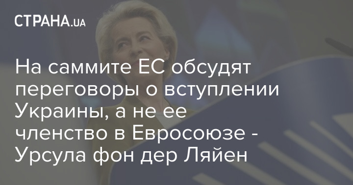 На саммите ЕС обсудят переговоры о вступлении Украины, а не ее членство в Евросоюзе - Урсула фон дер Ляйен