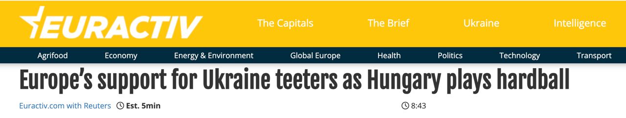 Источник Reuters считает, что перенос старта переговоров на март может стать возможным компромиссом с Венгрией.