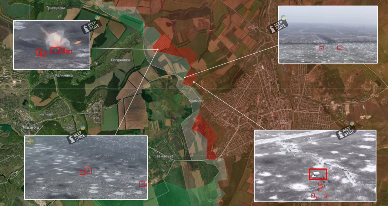По данным телеграм-канала Deep State, россияне продвинулись восточнее Богдановки (источники противника пишут о "100 метрах от первых домов"), а также захватили одну из высот под Хромово. "На распространяемых врагами кадрах виден десант, которому ничего не сделали, дальнейшая зачистка и закрепление сил противника", - пишет паблик.