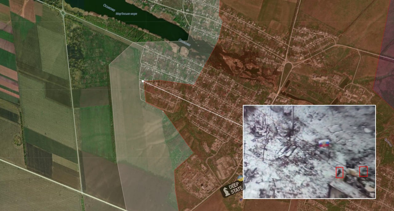 В Новомихайловке колонны противника уже заезжают на восточные окраины села. Причина - многие позиции ВСУ разбиты российской артиллерией, сообщает Deep State. Также паблик подтверждает новое продвижение россиян в Марьинке и геолоцировал вчерашние кадры с флагом РФ на северо-западной окраине города.