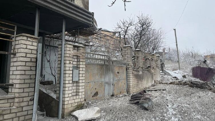 В жилых домах разрушены окна и забор. На месте работают стражи порядка и фиксируют очередной акт терроризма россиян.