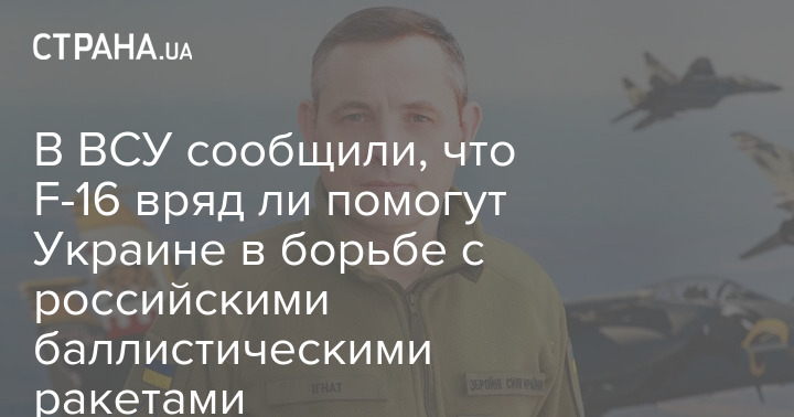 "Баллистика - это наземные установки, которые могут в любой точке сработать и выпустить ракету. Против них F-16 не может работать. Он может уничтожать аэродинамические цели, а также работать по наземным и надводным целям", - сообщил Игнат.