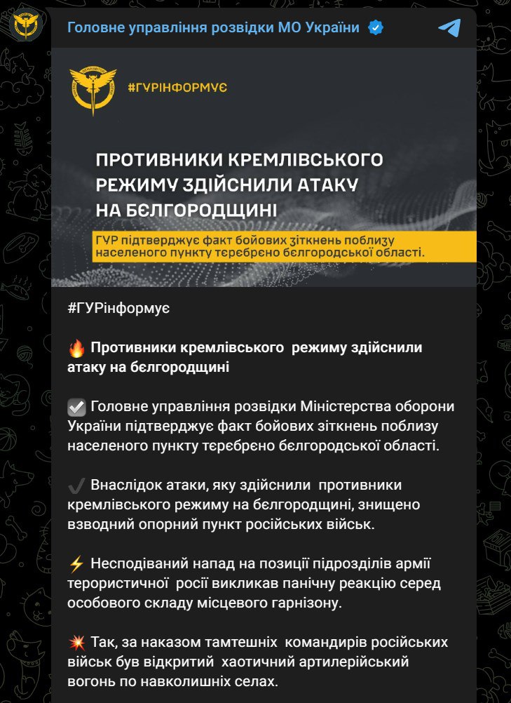 18.58 В ГУР Минобороны подтвердили бои у российской деревни Теребрено в Белгородской области.