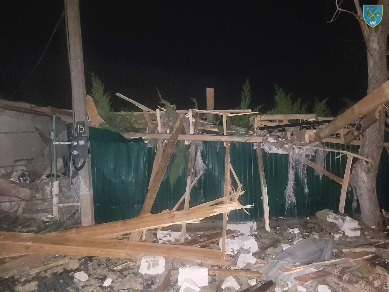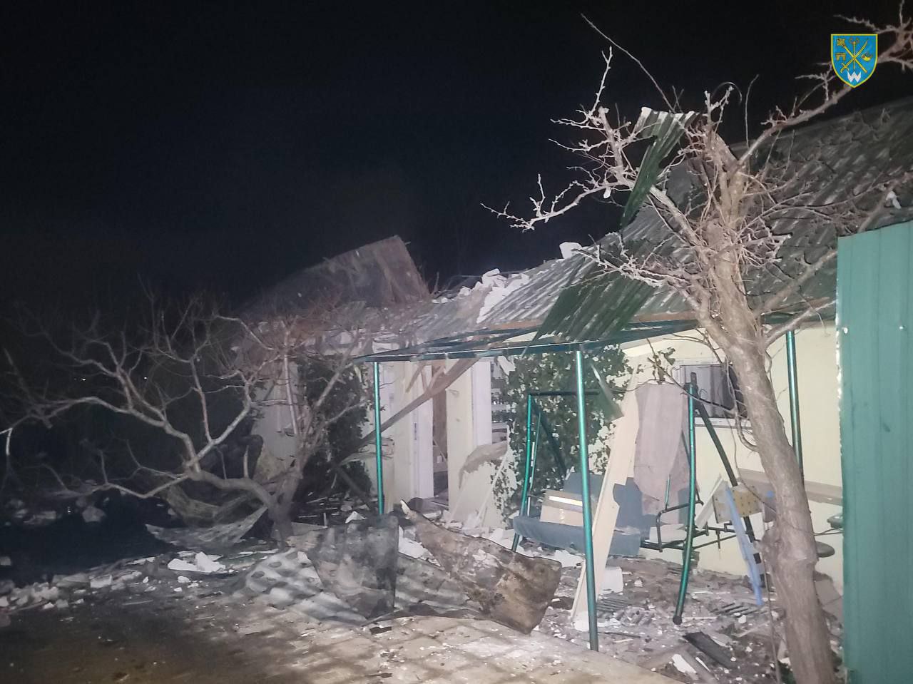 10:40 Фото последствий атаки "Шахедов" по Херсонской области. Повреждены дом, офисное здание и СТО.