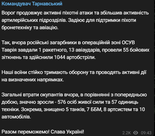 Об этом заявил командующий группировкой ВСУ "Таврия" Александр Тарнавский.